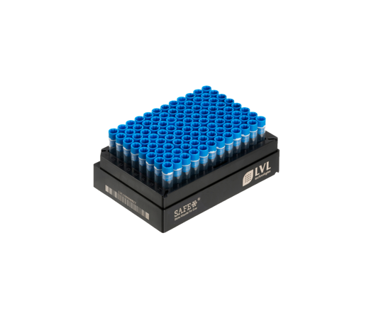 SAFE® 96 IT: 2D tubes with internal threads in the 96 SBS format. The injected TPE compression ring in the screw cap combined with the widened mouth of the tube and significantly improved sealing compared to the conventional screw caps with an O-ring. The screw cap cannot be overtightened, the permanently injected sealing ring cannot detach itself from the thread. The high screw cap is a big plus for manual handling.
